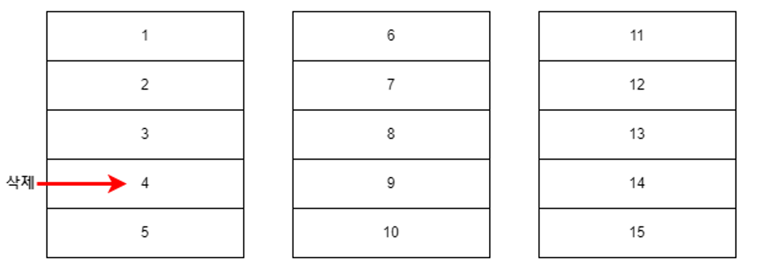 4번을 삭제하고 2페이지를 호출하면 7~11까지의 아이템이 호출되어 6번 아이템을 볼 수가 없다.