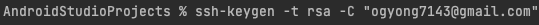 우선, Terminal을 열고 ssh-keygen -t rsa -C "github 이메일"을 입력한다.