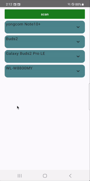 안드로이드에서 제공하는 BluetoothLeScanner를 사용해서 Bluetooth 주변기기를 Scan 해보려고 한다. Scan 데이터를 얻으면 아래 이미지와 같이 리스트로 그릴 것이다. (UI는 Compose를 사용) 권한 처리하기