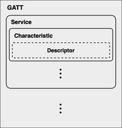 GATT는 ATT를 프로토콜로하여 BLE 기기 간에 데이터를 주고 받기 위한 방식을 정의해 놓은 프로파일이다. ATT는 UUID를 고유 식별자라는 속성을 지니며, 이 속성은 Service와 Characteristic로 구성된다.