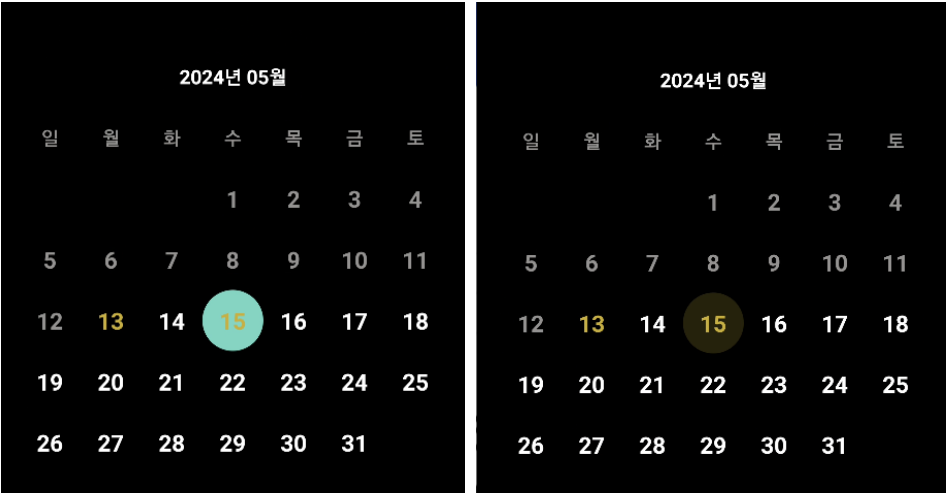 날짜를 선택했을 때는 setSelectionDrawable()에 select drawable을 전달하면서 해결하였다.