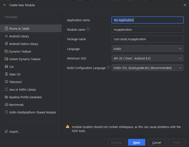 File > New > New Module을 통해 모듈을 생성할 수 있다.
